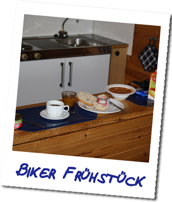 Motorrad bepacken und mit ein paar Tritten testen ob noch Luft in den Reifen war.