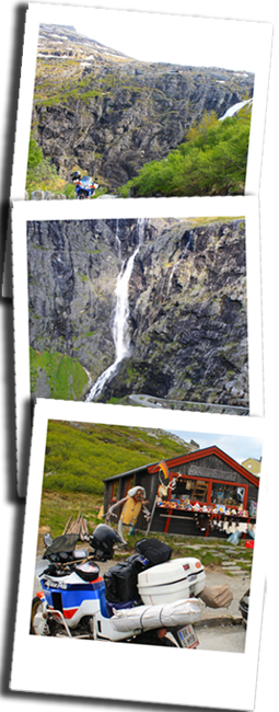 28.06.2010Diesen Tag startete ich schon um 7 Uhr, denn es stand Trollstigen auf dem Plan. Die schönste Serpentinenstraße Norwegens. Ich war auf der E39 unterwegs und fuhr ein paar mal mit Fähren, wo ich mich entspannt zurücklehnen konnt und meinen geschundenen Hintern etwas schonte. Die letzte Fähre führte von Sølsnes nach Åfarnes und das Wetter war herrlich.Die Sonne schien und es war beinahe windstill. Von hier waren es nur mehr etwa 50 Km bis zum Trollpfad. Es war traumhaft. Schon die Straße dorthin war Kurve um Kurve, später dann Kehre um Kehre. Wasserfälle und wilde Gebirgswasser säumten die Straßen nach oben bis zum Pass. Für einen Sattelzug aus Polen war es wohl nicht so schön, als er bemerkte wohin ihn sein Navi geführt hat, denn der Weg war an manchen Stellen mehr als Schmal. Für mich als Motorradfahrer war es das reinste Kurvenparadies und ich fuhr Trollstigen in beide Richtungen. Es kostete zwar viel Zeit, das war mir in diesem Augenblick egal. Nachdem ich den Pass ein zweites mal überquerte fuhr ich wieder auf eine der Hauptstraßen, die E136. Die Landschaft wurde wieder grüner und man sah wieder immer häufiger Schafe und Kühe auf einer Weide. Irgendwo in der Nähe von Øverdalen nächtige ich ein letztes mal. Noch etwa 2300 Km bis nach Hause. |